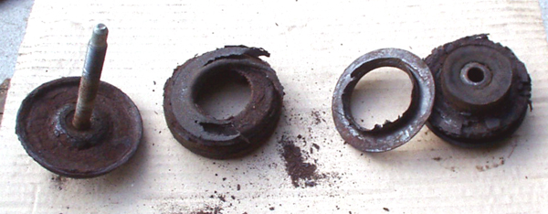| Front SFB This bushing actually looked fine while installed. Internal failure was only apparent after removal. The bolt itself was actually in good shape - no material lost due to corrosion. click pic for larger |