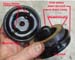 | Improved Design The top piece is comprised of a mushroom-shaped steel stamping using heavier gage steel than the stockers. The new shape laps further down the side of the bushing material to shed water away, and the center cone diverts water to the drain holes in the bottom section. My original bushings had a design that obviously retained water. This design discourages the intrusion of water and readily drains any that finds its way inside. |