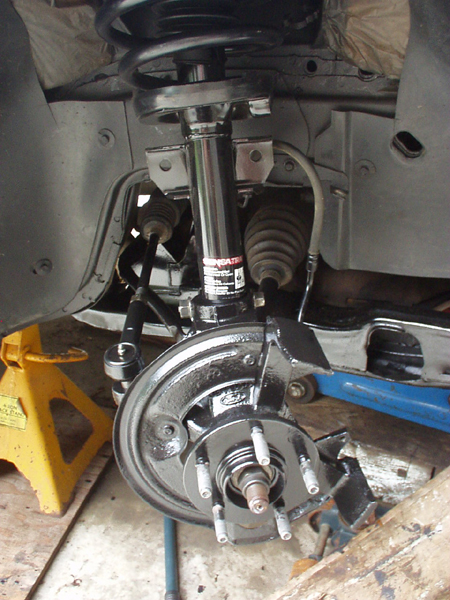 Align the grooves in the hub with the half-shaft and slide the knuckle on as far as it will go. You can then rotate the knuckle to align with the strut. Leaving the strut loose allows some extra motion to assist alignment. Once the knuckle is properly aligned it will slide onto the strut quite easily. Put your new pinch bolt through the knuckle as soon as it aligns with the alignment tab on the rear of the strut. You can use the hub nut to pull the hub onto the half-shaft the rest of the way. The rest of the connections are obvious or covered in other more detailed logs. As an alternative, you can assemble the knuckle and strut off the vehicle and install them both as a unit. This requires some extra muscle for one person, but will save a bit of time providing you have not installed the tension strut rod/LCA yet. That job is detailed here |
